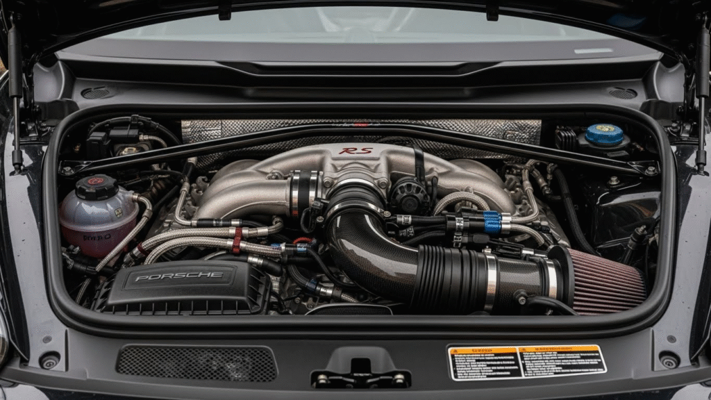 Few cars deliver an auditory experience as intoxicating as the GT4 RS. The cabin-mounted intakes channel induction noise directly to the occupants, creating a soundscape that is mechanical, raw, and deeply emotional.