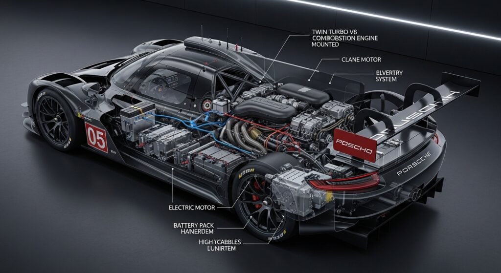 One of the most significant advancements in the Porsche 963 LMDh is its hybrid energy system. The vehicle recovers energy during braking, storing it in a high-performance battery system that delivers supplemental power during acceleration. This not only improves performance but also increases fuel efficiency, allowing for longer stints and strategic pit planning.